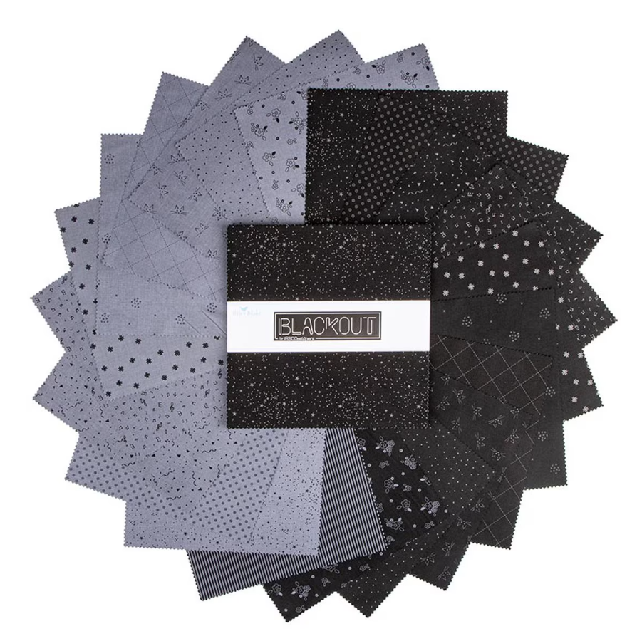 Description: This 10" stacker from the Blackout collection by The RBD Designers for Riley Blake is great for quilting and home décor. It features 42 pieces of fabric with simplistic floral, animal and geometric designs on black and gray colored backgrounds. Each print may be included 1-2 times in the bundle.