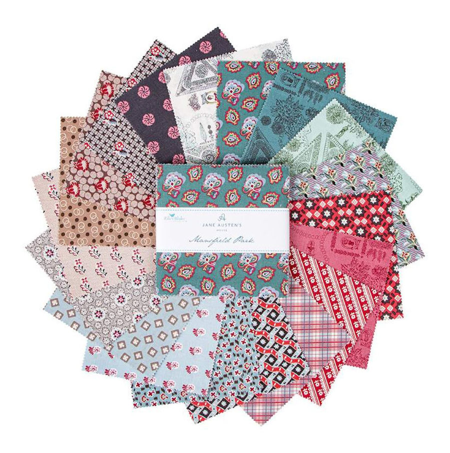 Description: This 5" stacker charm pack from the Mansfield Park collection for Riley Blake is great for quilting and home décor. It features 42 pieces of fabric with stylistic, geometric floral designs on a wide array of vividly colored backgrounds. Each print may be included 1-2 times in the bundle.