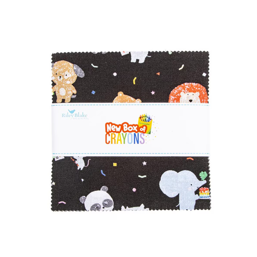 Description: This 5" stacker charm pack from the New Box of Crayons collection for Riley Blake is great for quilting and home décor. It features 42 pieces of fabric with geometric crayon designs on a wide array of brightly colored backgrounds. Each print may be included 1-2 times in the bundle.